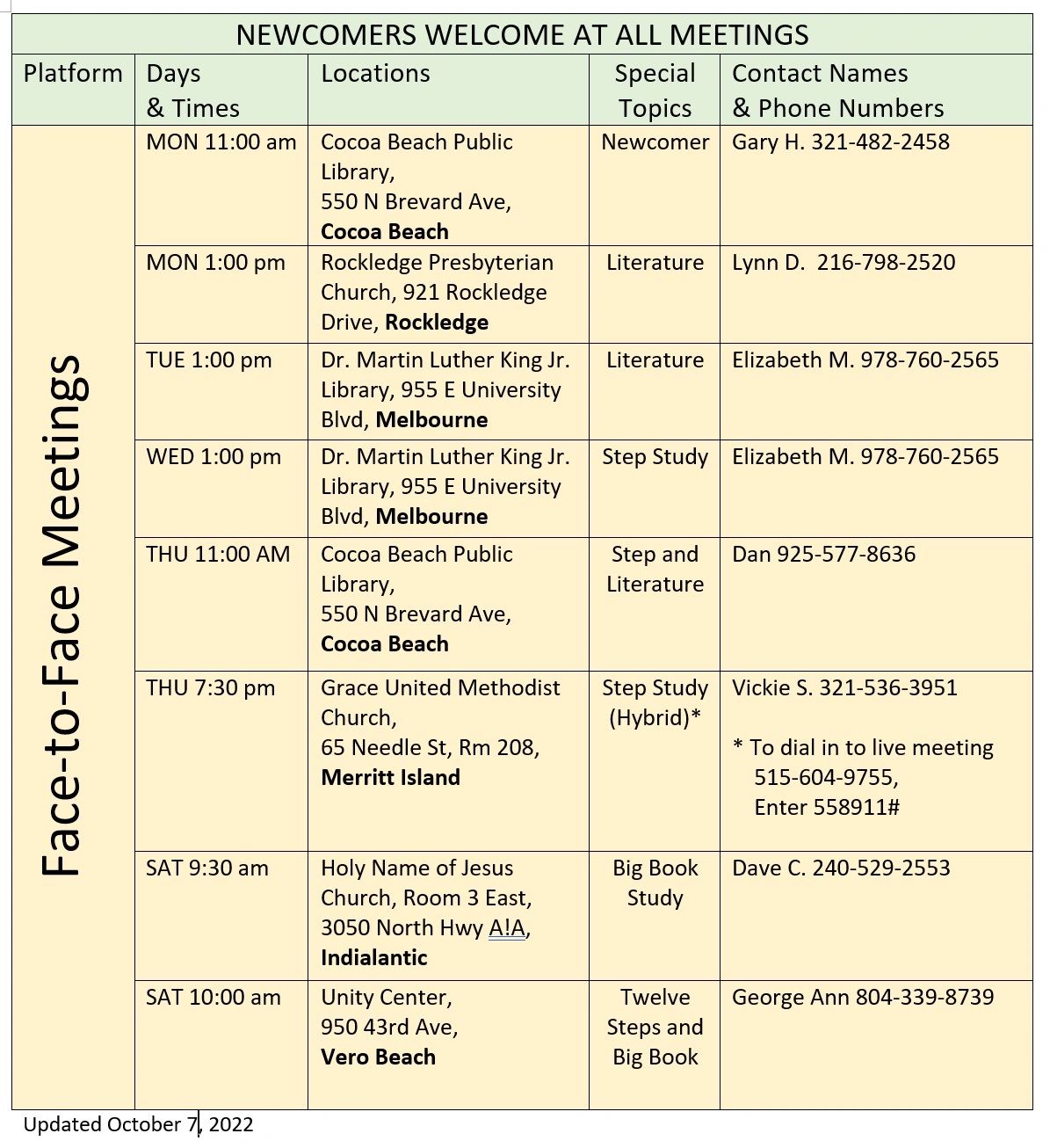 OA90 Phone Meeting List October 2 2022 7th Tradition Posts From Our Members Just for Today. The Gift that Keeps on Giving. To get the SCHEDULE and call-in.