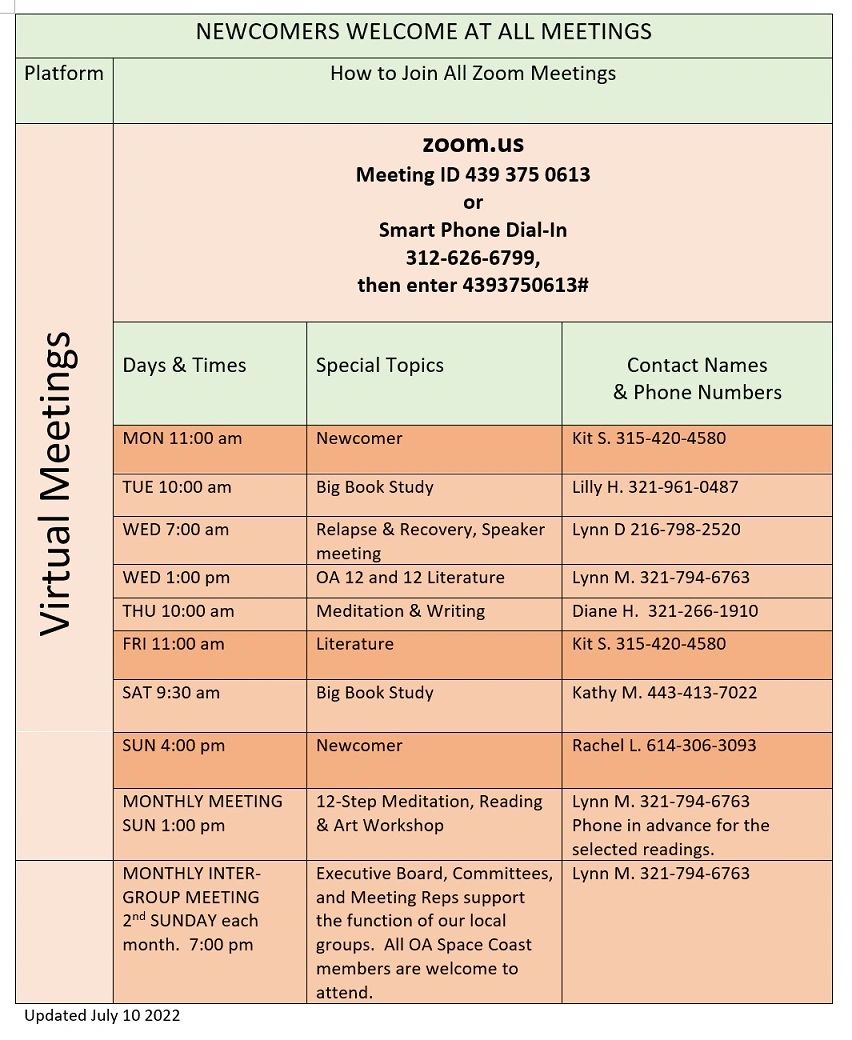 810 4426 4132 Passcode. You do not have to register to attend an OA meeting. Northern Virginia Intergroup of Overeaters Anonymous.